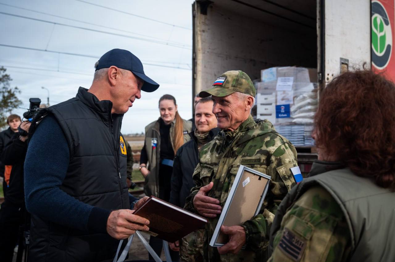 Делегацию сопровождал секретарь кубанского отделения партии Николай Гриценко, а принимал гуманитарную помощь Губернатор области Владимир Сальдо.