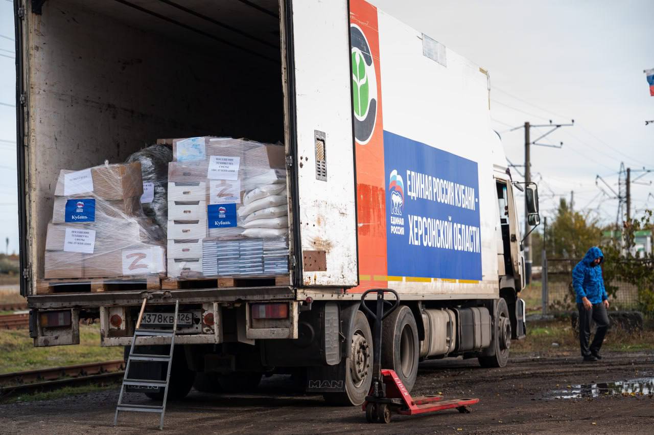Краснодарское отделение «Единой России» организовало доставку 8 тонн гуманитарной помощи в Херсонскую область. Груз включал в себя продукты, технику и медикаменты для образовательных учреждений и военнослужащих.