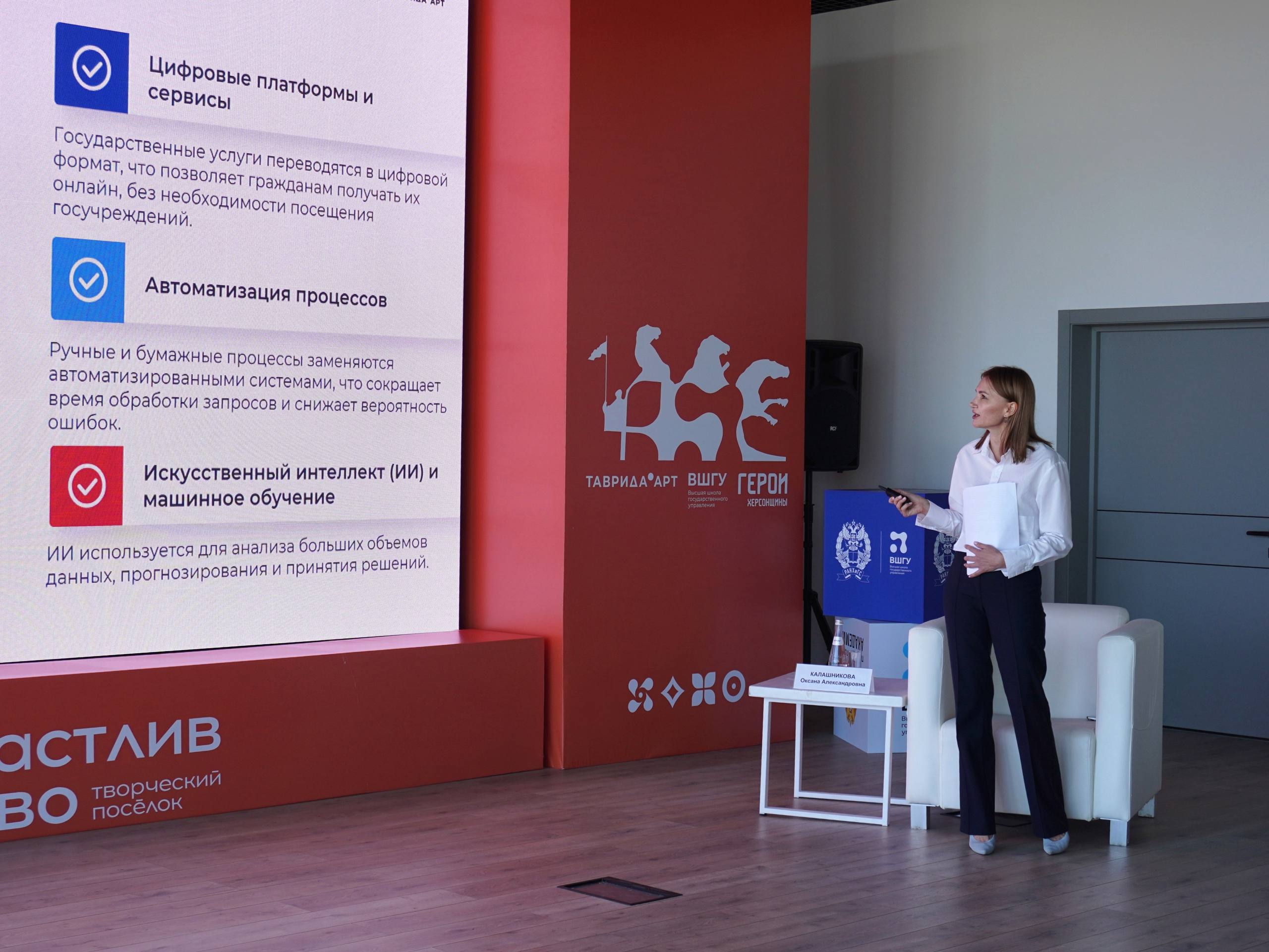 На первом образовательном модуле проекта «Герои Херсонщины» специальную лекцию, посвященную ключевым компетенциям современного руководителя, для финалистов провела начальник Управления внутренней политики региона Оксана Калашникова.