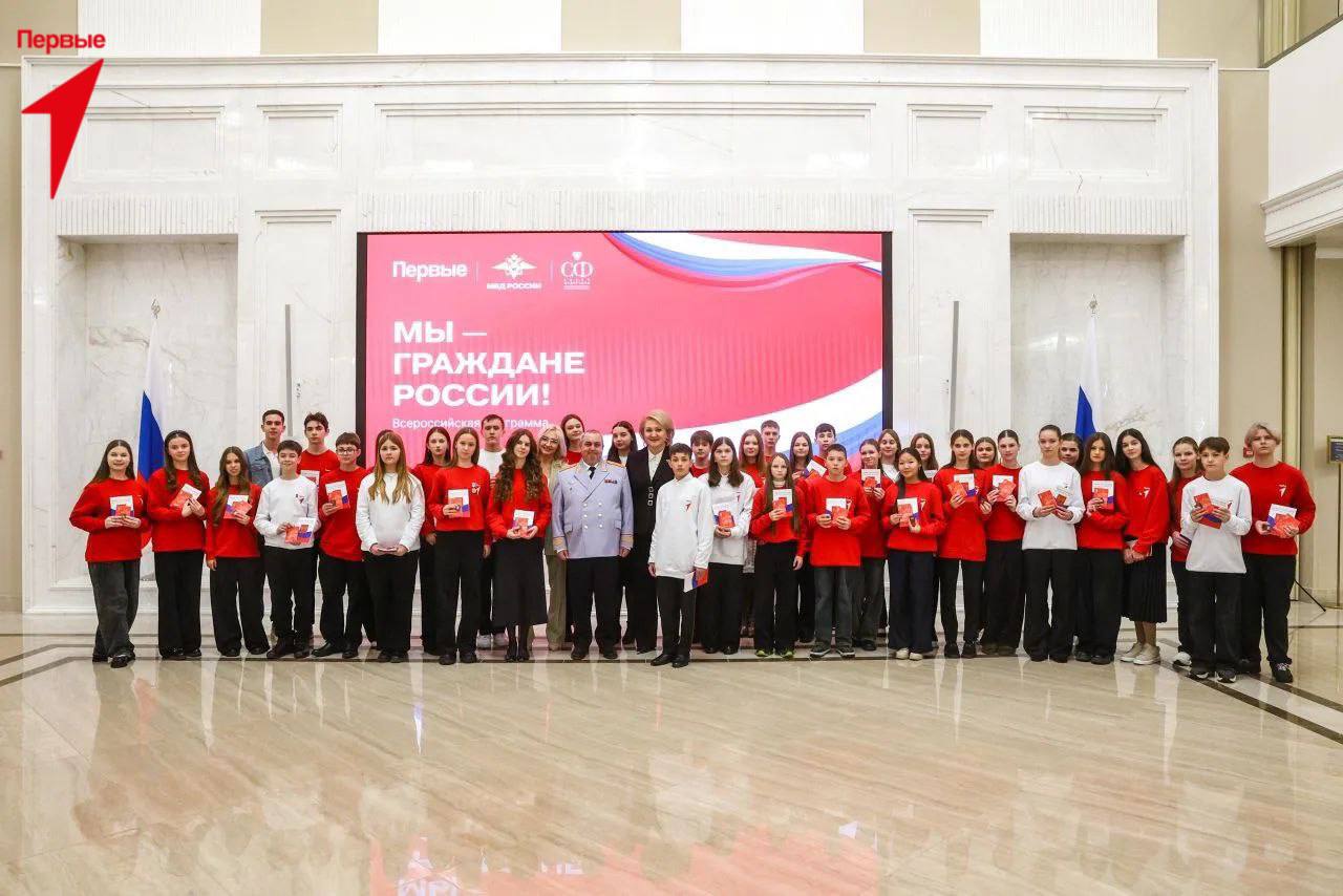 В торжественном мероприятии участвовали 37 школьников из разных регионов страны. Им вручили паспорта гражданина Российской Федерации, экземпляры Конституции РФ и памятные подарки от «Движения Первых».