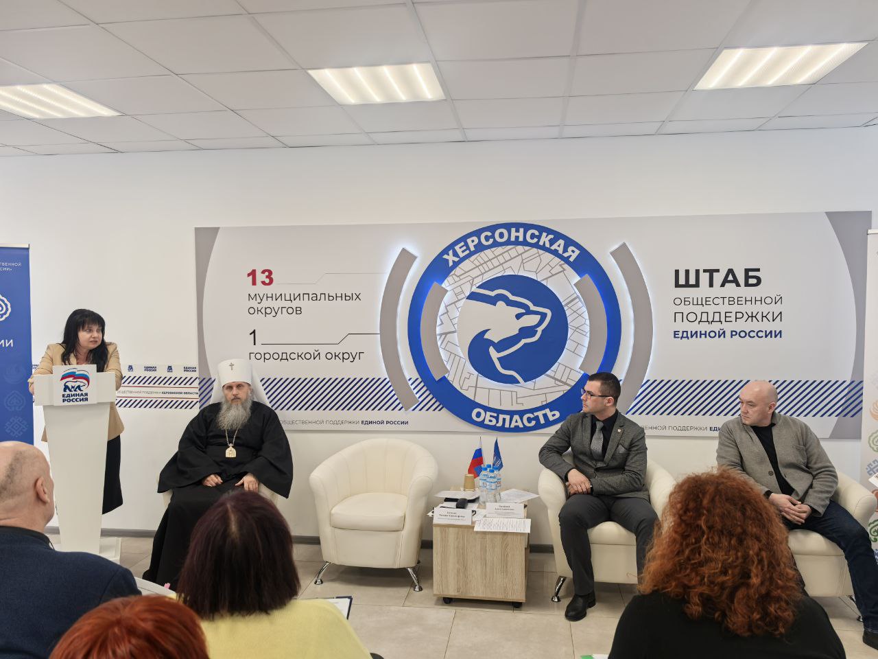 На базе регионального отделения партии «Единая Россия» прошёл круглый стол «Единство народов России как фундамент стабильности и развития Херсонской области». В мероприятии приняли участие представители власти, духовенства и национальных общин региона.
