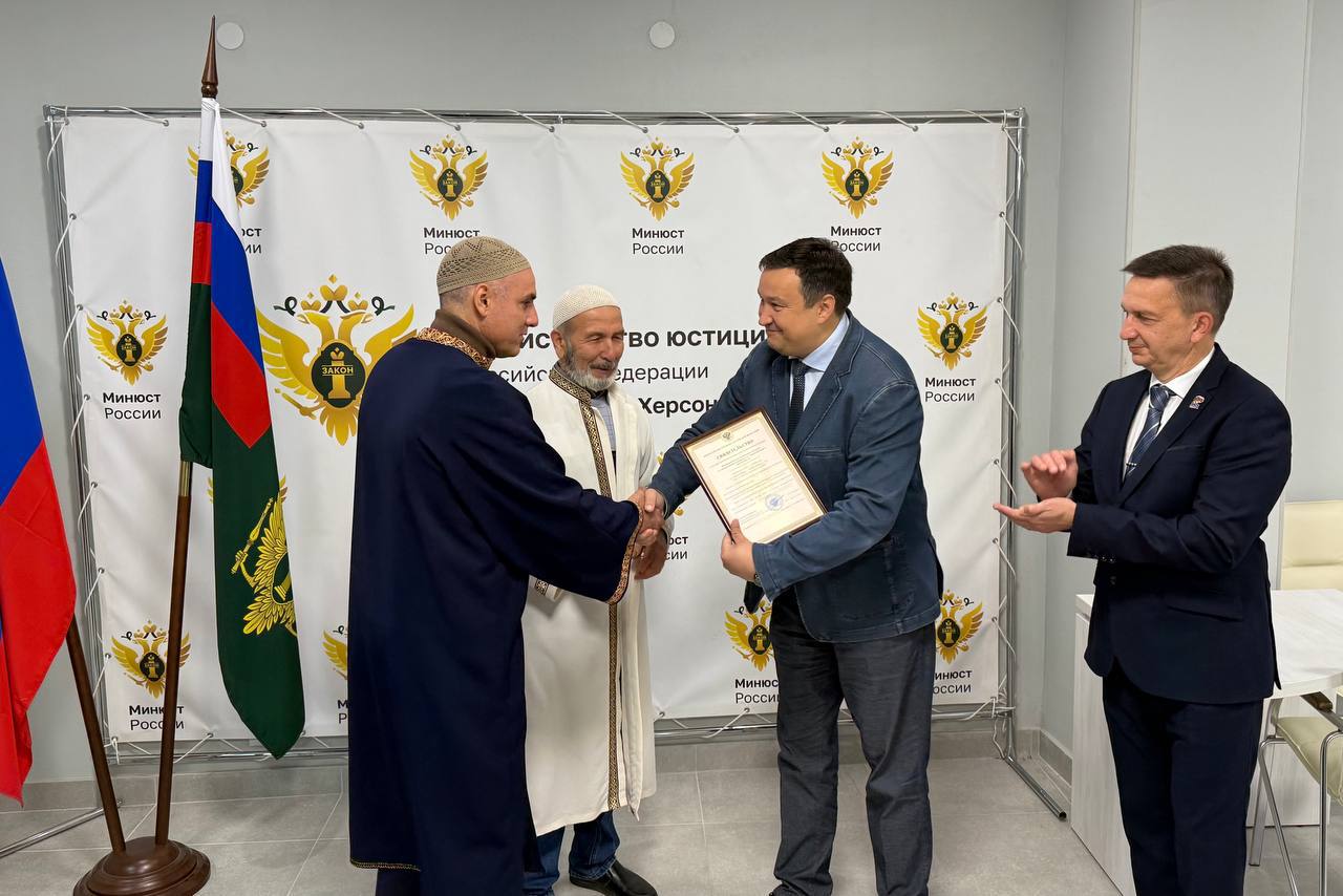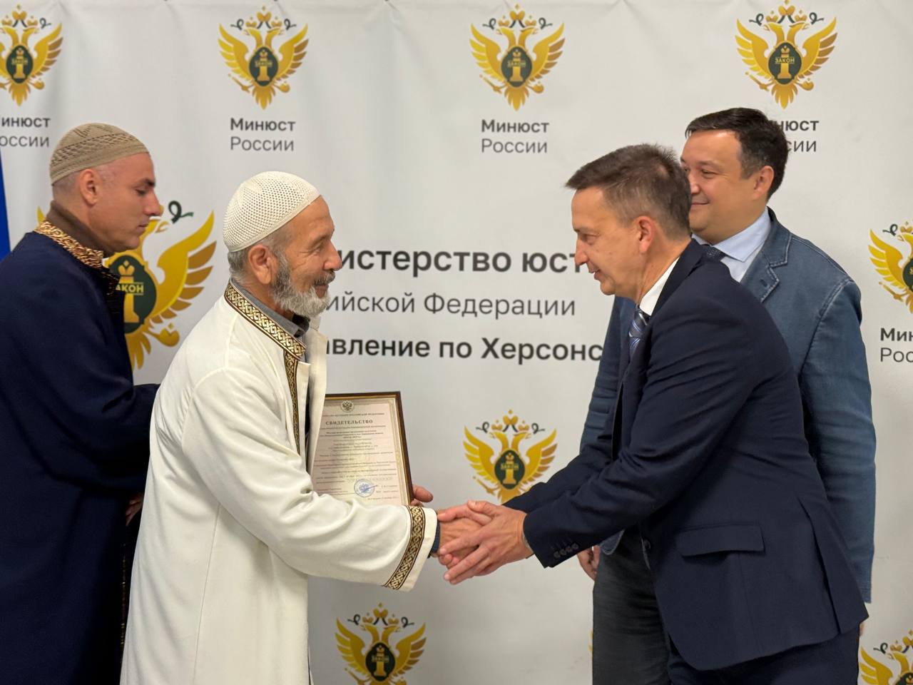 При поддержке депутата Херсонской областной Думы Рустема Нимметулаева мусульманская религиозная община «Иман» из Новоалексеевки получила официальное свидетельство о государственной регистрации. Это событие выводит деятельность общины в правовое поле Российской Федерации и открывает множество возможностей.