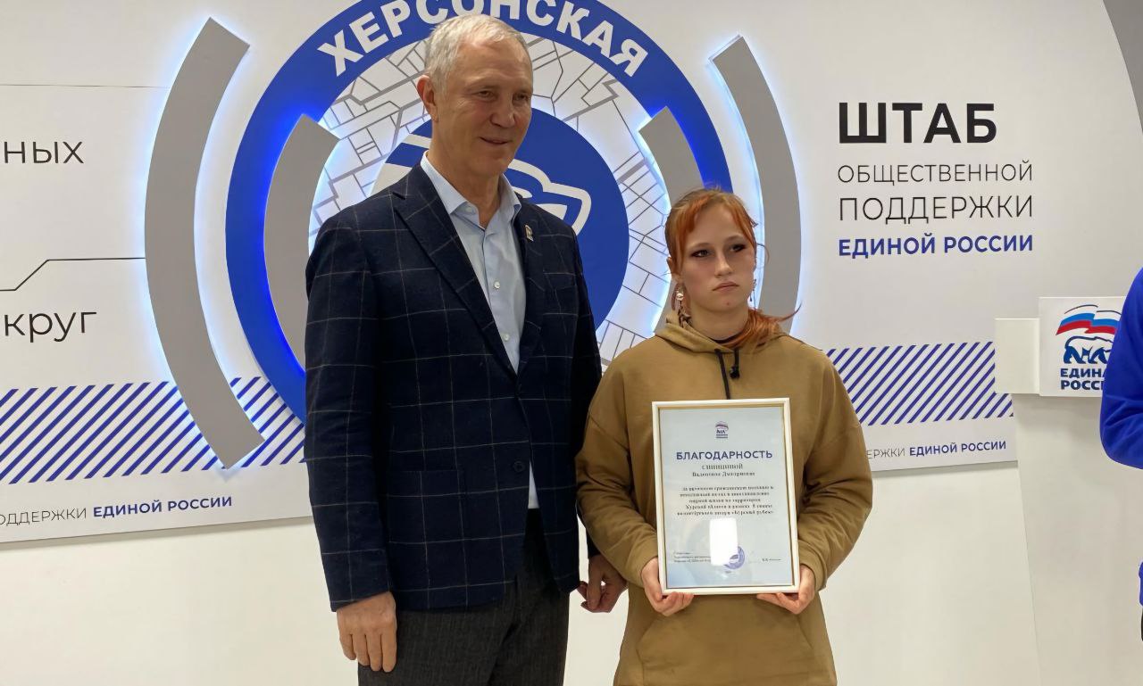 В штабе общественной поддержки «Единой России» в Херсонской области состоялась церемония награждения волонтеров. Благодарность за самоотверженную работу получили активисты «Молодой Гвардии» и участники лагеря «Курский рубеж».